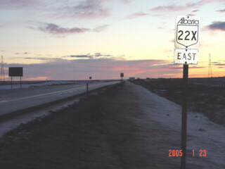 Highway 22X serves the lower outskirts of Calgary, primarily serving as an agricultural route. To my knowledge, this is the only primary-highway in Alberta using an "x" as a suffix.