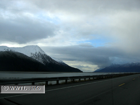 Switching gears, let's head south of Anchorage. To your left is the Turnagain Arm.