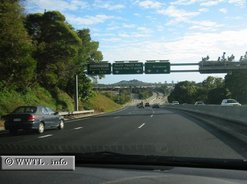 (Northbound Pacific Highway; Tweed region, New South Wales) --Photo taken by Vishwarma Hindrabagi Map Location: -28.21383, 153.54582 Next exit: Banora Point.