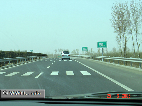 Beijing law prescribes that motorists remain 50 metres behind each other. The signage above demonstrates this.