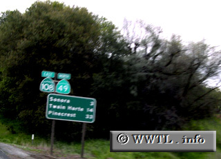 (Northbound Gold Chain Highway; Calaveras County, California) --Photo taken by Eric LozagaFor the course of ~six miles, State Route 108 and State Route 49 duplex.
