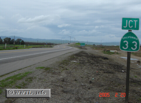 A grade-separated interchange with State Route 33 lies just ahead. Note how