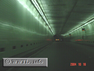 The westbound descent into the Webster Tube begins.
