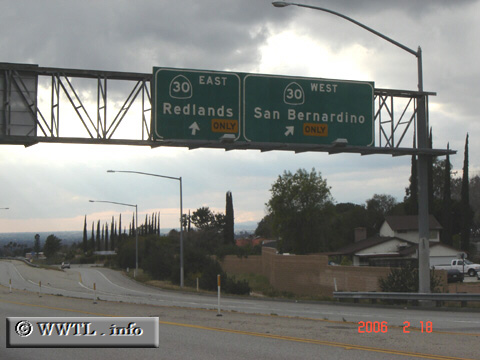 (End Southbound State Route 330; Highland, California)--Photo taken by Carlos Rogers Map Location: 34.13171, -117.19895 End southbound State Route 330. Here, two iterations of State Route 30 battle to be your conduit.
