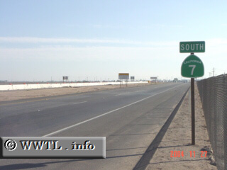 State Route 7 is the shortest one-digit state route in California. It connects the eastern outskirts of Calexico with metropolitan Mexicali, Baja California.