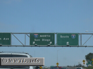 Notice how the Interstate 5 North overhead displays San Diego, and Interstate 5 South has no control point. Tijuana lies five miles south of this interchange. Interestingly in this Mexican municipality, Nat'l Routes 1D and 2D show San Diego as a northern control point. | ![]() |