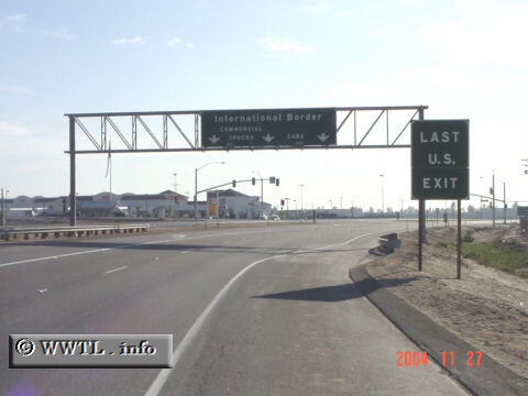 At this junction, passenger and commercial-vehicles get separated. To the left is a gas-station with 15+ pumps, which appearingly caters to Mexicans wishing for cheaper American gasoline. Interestingly. as I drove this route, there were more "Baja California Front" license-plates showing than those from California. This suggests that the USA and México have some degree of economic dependence on another, and seemingly thwarts suggestions that open-borders are not good for the economy. | ![]() |