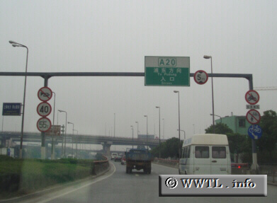 Route A20 funnels traffic from Shanghai's outskirts within a circular-like formation. Throughout the municipality, it is colloquially known as the "outer ring road" (China.rough translation). The "inner ring road" (not pictured) is much smaller in diameter than A20, and connects the downtown-districts of Luwan, Xuhui, Jin'an and Huangpu.