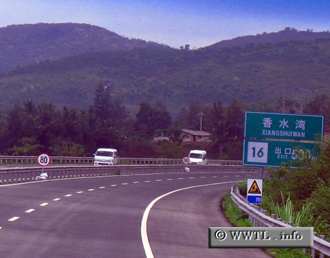 The Dongxian Highway, known in English transliteration as the East Line Highway, follows the east coast of Hainan (海南省) province. The tropical nature of Hainan affords lush vegetation and palm trees, as you'll see later in these entries. Hainan is the largest Chinese island and is home to 8 million inhabitants. |