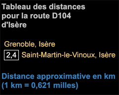 La route D104 traverse avec les rues de Grenoble.