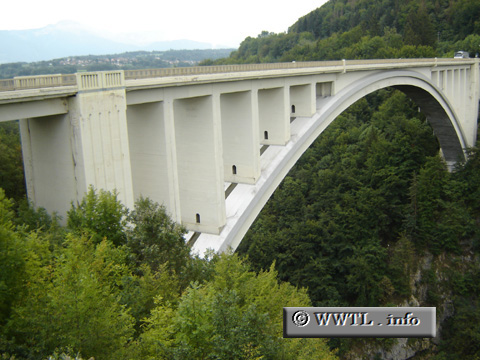 A Swiss-designed bridge carries motorists over the canyon.
