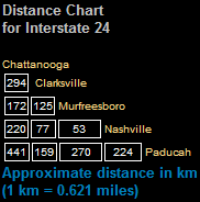 Interstate 24 connects Pulleys Mill, Illinois with Chattanooga, Tennessee.