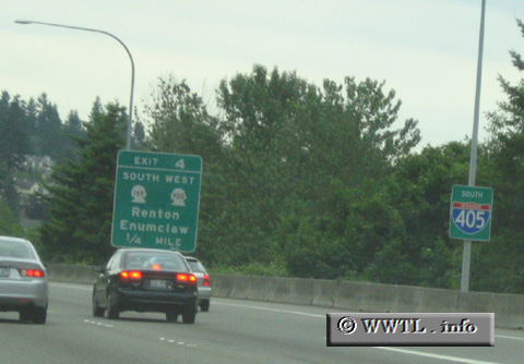 (Southbound Interstate 405; Renton, Washington State) --Photo taken by Dan Peri Map Location: 47.49775, -122.19494 In metro Seattle, Interstate 405 acts as an eastern-bypass to its parent--Interstate 5. Next