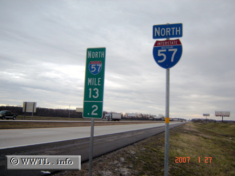 (Northbound Interstate 57; Mississippi County, Missouri)--Photo taken by Carlos RogersMap Location: 36.8779, -89.52043 Interstate 57's objective is to steer Memphis- and New Orléans-originating motorists towards Chicago.