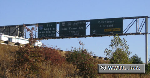 (Southbound Interstate 5; Sacramento, California) --Photo taken by Dan Peri An RV passes through the capital's downtown.