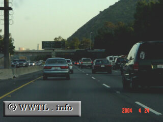 (Southbound Golden State Freeway; Los Angeles, California) --Photo taken by Dan Peri Map Location: 34.14131, -118.2779 Notice the barbed-wire on the overhead sign in the median.