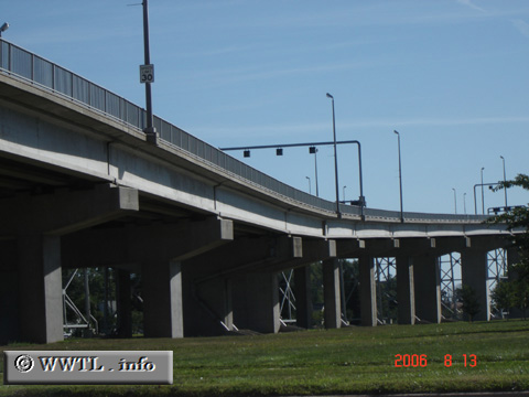 In eastern Port Huron, Interstate 69 and Interstate 94 ascend to their international bridge crossing.