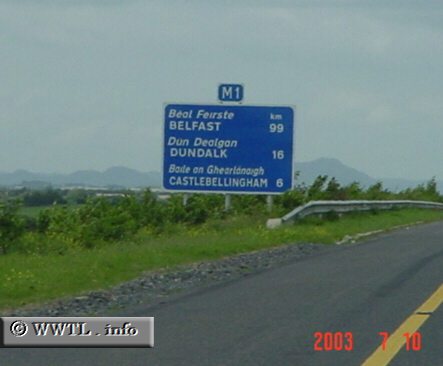 The M1 is a nationally-subsidized motorway which connects Dublin with the Northern Irish border. Along its journey, there is one toll bridge--it costs roughly 2 euros to cross.