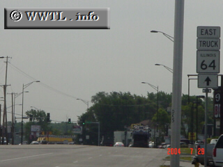 Since North Avenue (Illinois State Route 64) carries large amounts of car traffic, a truck diversion route is set up in Elmhurst. Interestingly, the route pictured above is Lake Street, which already serves as US 20. |