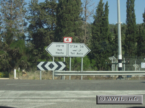 | (Junction Nat'l Route 4; north-central Israel) --Photo taken by Reuven Peri This picture seems to be taken from a side-road located between NR-2 and NR-4. At this intersection, travelers are given the options of NR-4 north (Haifa) or south (Tel Aviv).