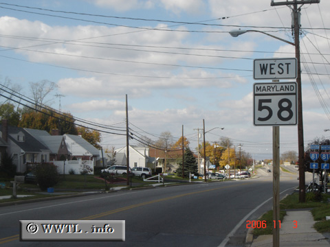Maryland State Route 58 connects Hagerstown with Pennsylvania, via a northwestern alignment.Maryland State Route 58