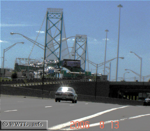 The Ambassador Bridge, a relatively busy port of entry, carries traffic between the uptown districts of Detroit and Windsor.