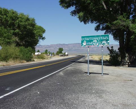 Route 375, popularly known as the Extraterrestrial Highway, connects Lincoln and Nye Counties. Near its eastern terminus, the route parallels the Nellis Air Force Range--home of the world-famous Area 51. It is rumoured that extraterrestrial beings (and posssibly their remains) are kept at Area 51, although some debunk this theory as simply urban legend.
