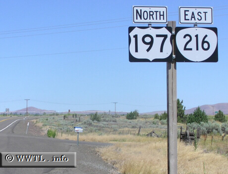 (Eastbound State Route 216/Northbound Federal Route 197; Wasco County, Oregon)