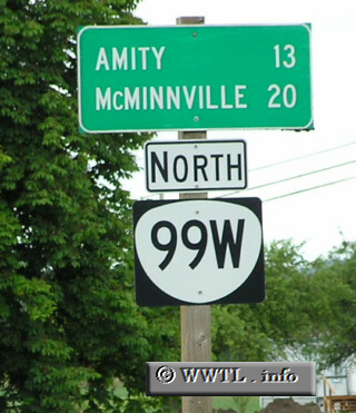 In past generations, Oregon hosted Federal Route 99W and Federal Route 99E. Once Interstate 5 was commissioned, the two federal routes were slated for obsolence. Over the years, Federal Route 99W and Federal Route 99E became Oregon State Route 99W and Oregon State Route 99E, respectively. The westernmost route, Oregon State Route 99W, straddles the Long Tom and Willamette Rivers.