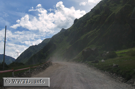 ![]() (Northbound National Route 28; Cusco) --Photo taken by Carlos Rogers English | español This highway follows the Urubamba River. In April 2011, pattern shifts in the river caused the main highway to crack. This makeshift detour was put into place. |