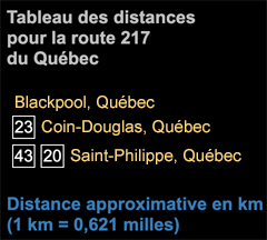 Route 217 est semblable à A15 et dessert les fermes de la province du sud avec la municipalité de La Prairie.