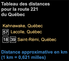 Route Provinciale 221 commence à la frontière New-York/Québec et traverse du nord-ouest au Pont Honoré-Mercier. Ce pont donne une entrée à la région de Montréal.