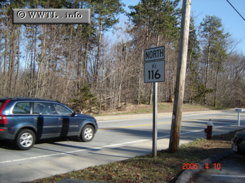 Rhode Island State Route 116, a tree-lined corridor in the central region of the state, passes many ponds and rivers throughout its routing.