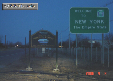 (Federal Route 2 Ouest; Rouses Point, New York) --Crédit Photo: Carlos ROGÉRSCoordonnées géographiques: 44.99971, -73,35866 English | français