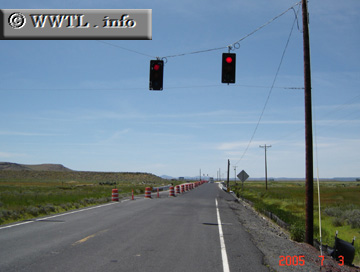 Opens skies and green grass welcomes motorists in south-central Oregon. On the given day this photograph was taken, construction reduced the road to one alternating lane of traffic.