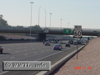 ![]() (Westbound Superstition Freeway; Tempe, Arizona) --Photo taken by Carlos Rogers Map Location: 33.38602, -111.85466 The termini points for Federal Route 60 are La Paz County, Arizona and Virginia Beach, Virginia.