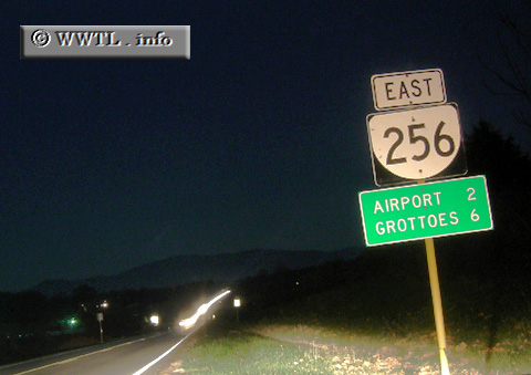 ![]() (Eastbound State Route 256 Augusta County, Virginia) --Photo taken by Carlos Rogers Route 256 funnels motorists from Interstate 81 into Grottoes. In the background are the mountains of the Shenandoah National Park.
