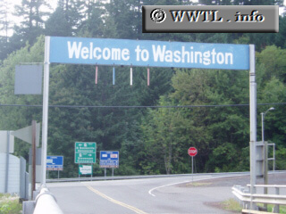 (Junction Washington State Route 14; Skamania County, Washington State) --Photo taken by Dan Peri Map Location: 45.66294, -121.90472 A "Welcome to Washington" marquee greets motorists from the Bridge of the Gods.
