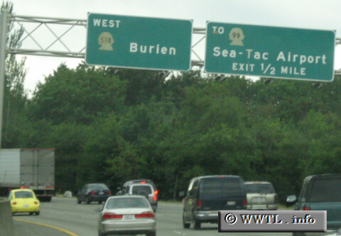 ![]() (Westbound State Route 518; Tukwila, Washington State) --Photo taken by Dan Peri Map Location: 47.46587, -122.27619 Washington State Route 518 is a freeway which connects Interstate 5, Washington State Route 99 and Washington State Route 509 with the SeaTac International Airport. |