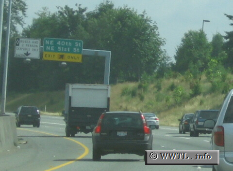 (Eastbound State Route 520; Redmond, Washington State) --Photo taken by Dan PeriMap Location: 47.64066, -122.13467 An exit for Redmond approaches.