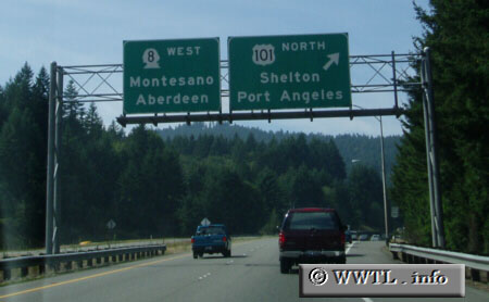 ![]() (Junction Washington State Route 8; Thurston County, Washington State) --Photo taken by Dan Peri Map Location: 47.056, -123.0095 Highway 8 is a divided-highway which connects Olympia with westbound Federal Route 12. Back to World Map | ![]() |